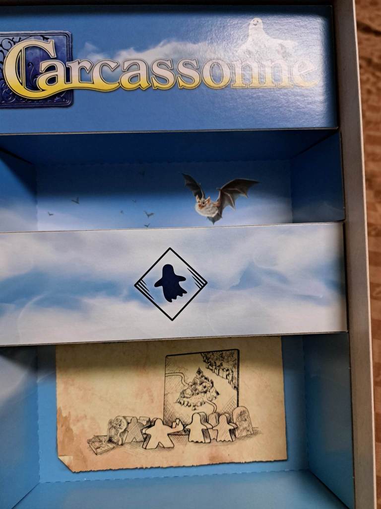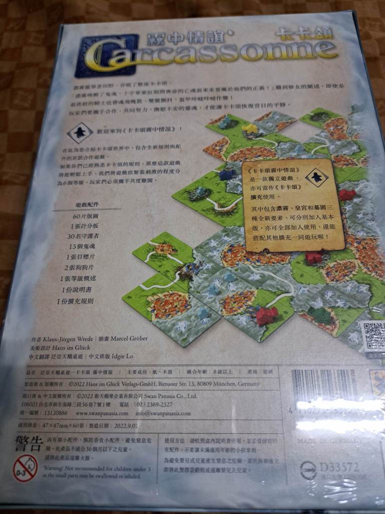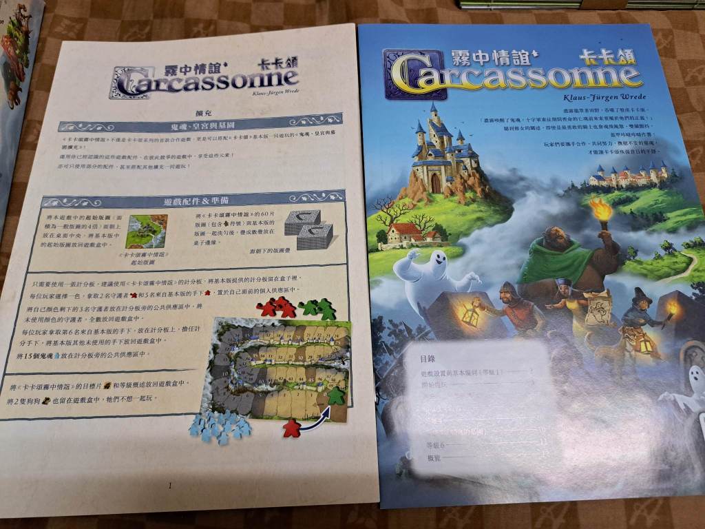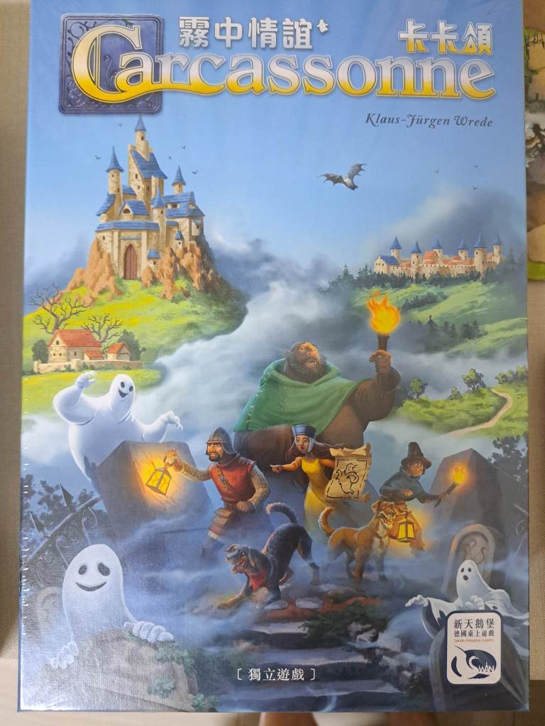 一開始是不小心在yt看到Radho的這篇Mists Over Carcassonne – hmm, probably best as a solo game OR expansion TBH短影片https://www.youtube.com/watch?v=01QA-1WZxBs&t=25s,所以得知卡卡頌出了第一套合作版的獨立擴充,隔沒幾天,鵝堡的粉專突然介紹說要出繁中版,一整個開心起來,之後終於等到鵝堡霧中情誼開始預購後,就在官網訂了一份還刷完卡,結果隔沒幾天陽光桌遊也推出相同的價格,超取貨到付款,還多送版塊套(衝動是魔鬼呀!)