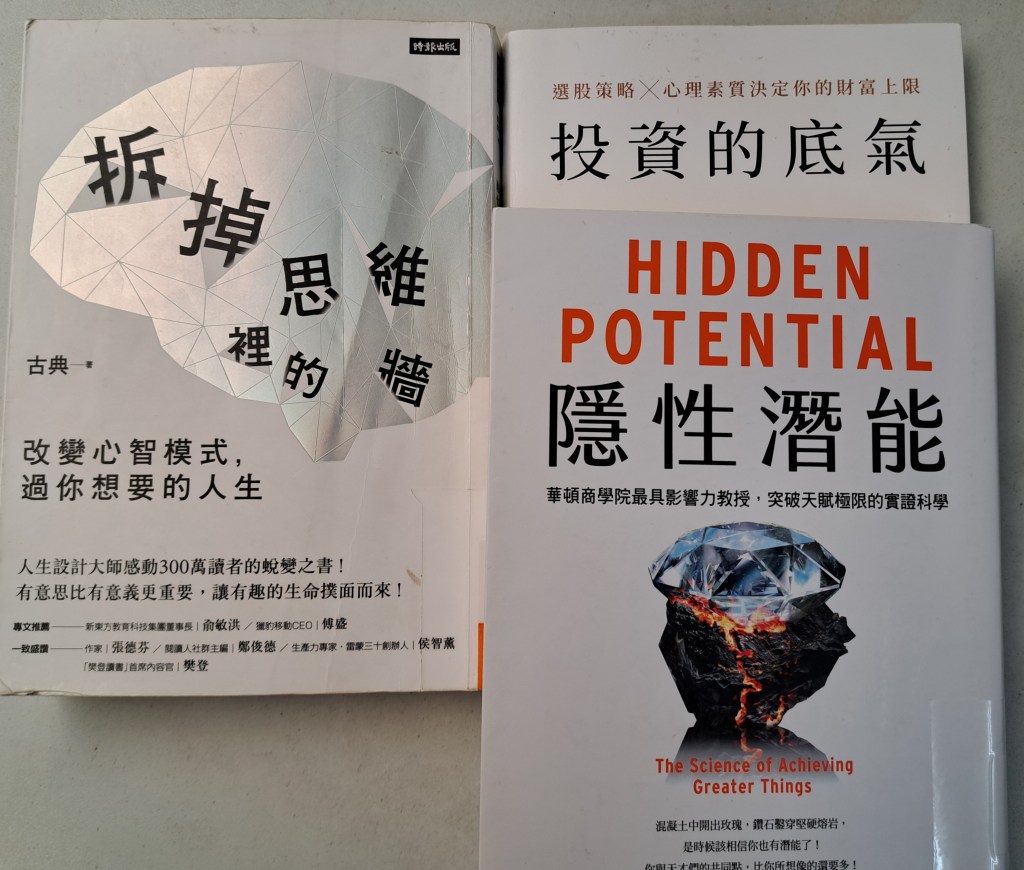 分別是隱性潛能、投資的底氣、拆掉思維裡的牆、能力圈選股、看美劇說出一口好英文