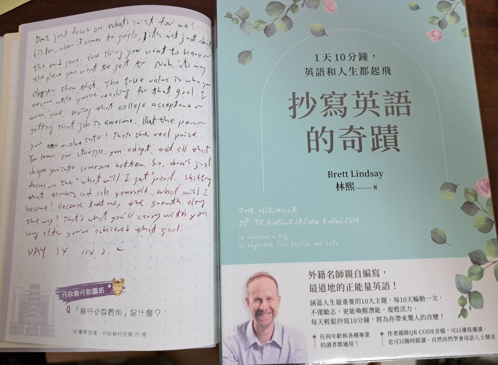 2024年底在政大書城買了「抄寫英語的奇蹟」及「執行長日記」,後者已經看完,前者則是每天一篇的進行中,目前已看到第34篇,想說可以多看一些英語類的書籍。